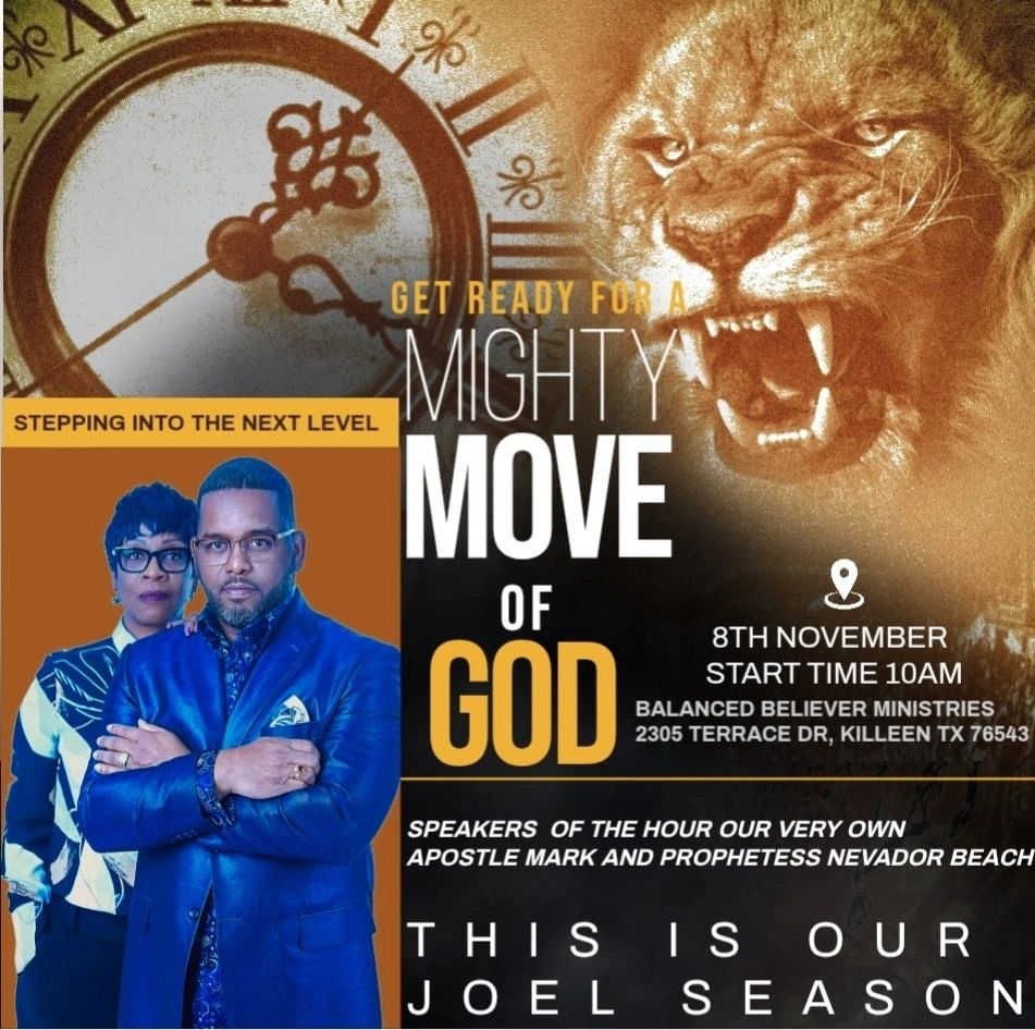 Join Apostle Mark & Prophetess Nevador Beach for a life-changing encounter filled with anointing, breakthrough, and prophetic release.